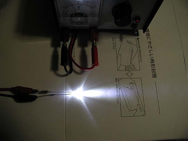 流行の超高輝度LEDを買った。4V20mAで11000mcd。1個でポジションランプより明るい。光を直視すると網膜がやられて危険デス。