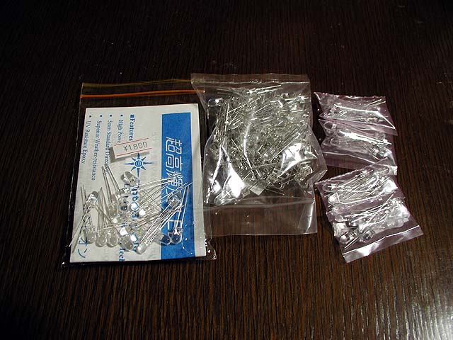 真っ赤なLEDも買った。1.9V20mAで15000mcd。ブレーキランプに使えそう。光を直視すると目が眩んでしばらく何も見えなくなります。