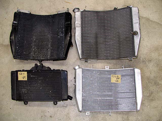 ヤフオクで買い漁ったラジエーター。左上GSXR1100W、右上ZXR400SP、右下GSXR600。総額60000オーバー(泣)。