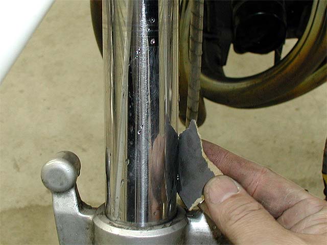 フロントフォークに小さなサビができ始めていたので、1500番のペーパーで磨く