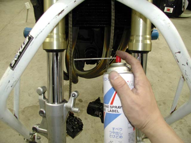 磨き終わったらサビが進行しないようにシリコンスプレーをかける