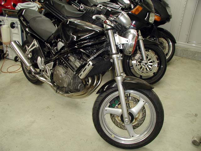 4月の那須選手権用のバンディット250。フロントホイールにヒビが入って空気が漏れていたので、ケンコーさんにもらった刀用に交換。他にも整備待ちのバイク多数あり。明日頑張ろ〜っと