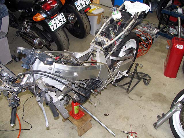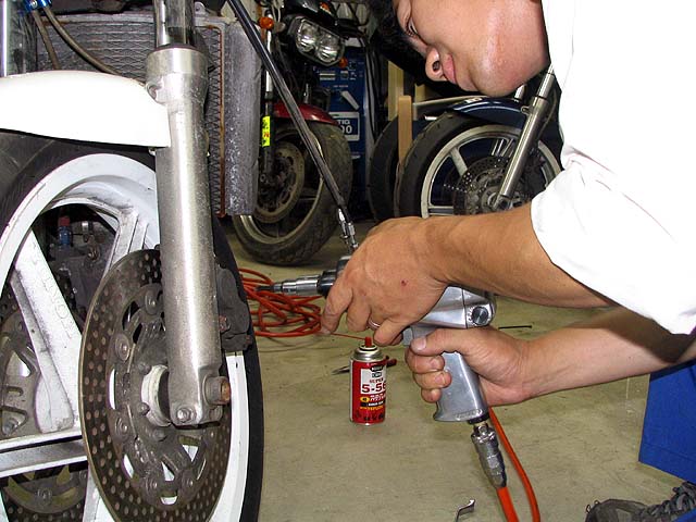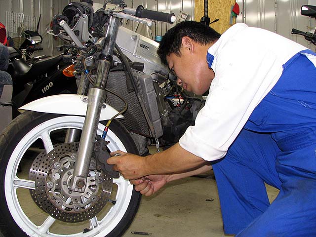 NSR最終兵器号の整備。ブレーキのパッドピンが錆びて緩まない。