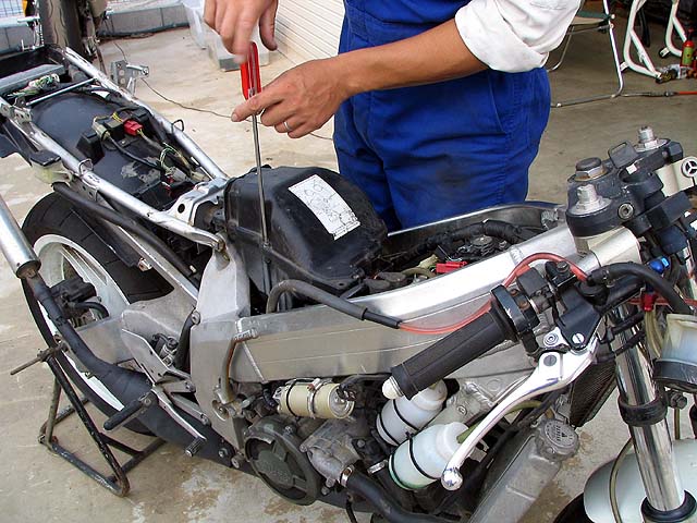 キャブセッティングで苦労したくないのでエアクリーナーBOXつけてメインジェットをノーマルにする。