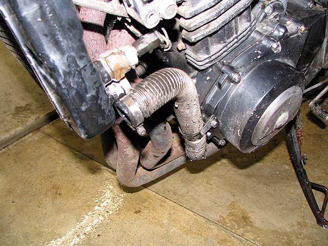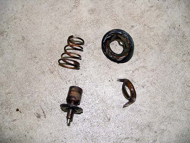 真夏なのでサーモスタット無しでも良いことにする。ベースがガスケットを兼ねているので分解してよけいな部品を外す。