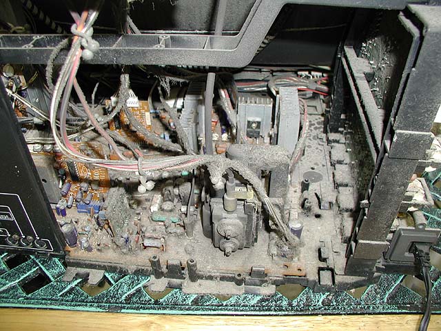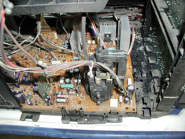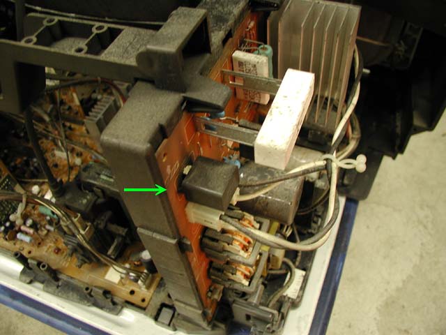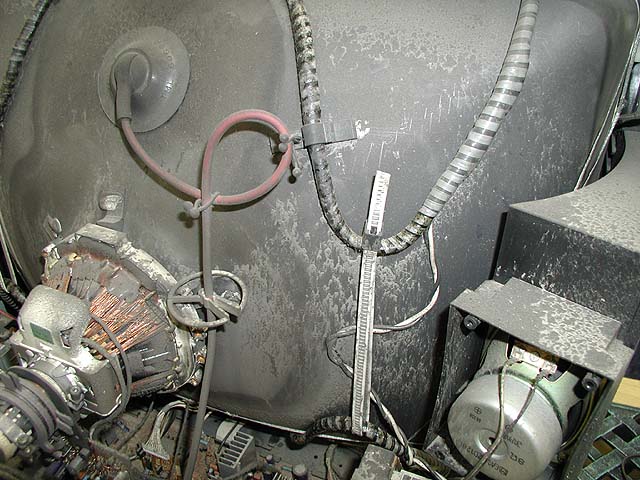 デガウス回路のPTCサーミスタ部分が焼けている。よくある故障である。疲れたので続きはまた明日〜