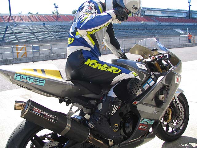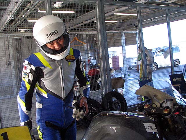 今日も仕事を休んでもてぎで練習。ツナギちゃんと持ってきましたよ。