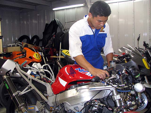 ぉお田さんのCBRを整備。5日のもて耐公開練習で走らせるそうです。