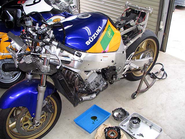 今日はGSXR600の整備。ひょっとしたらデスチームがもて耐で使用するかもしれないので出場可能な状態にしておく。