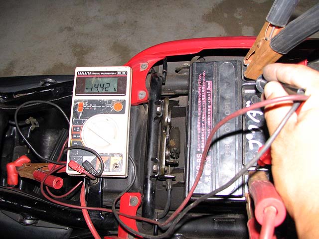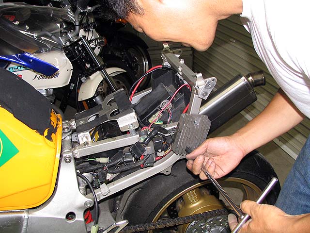 明日ぉお田さんに納車する事になっているCB400SFをすっかり忘れてた!レギュレーター交換して充電をチェック。