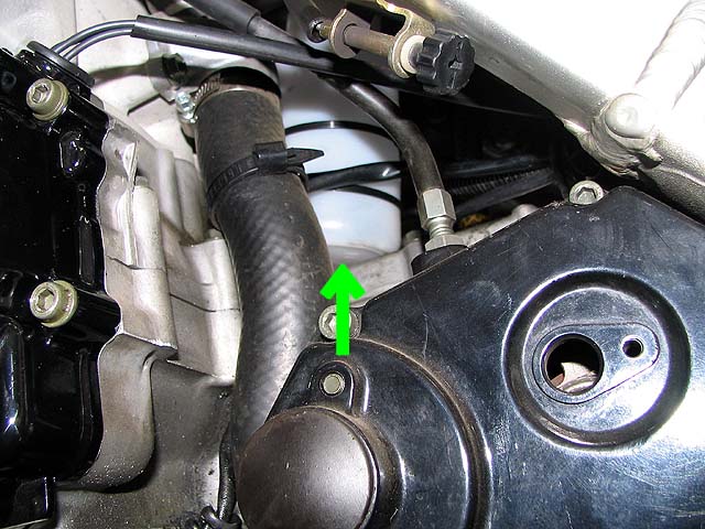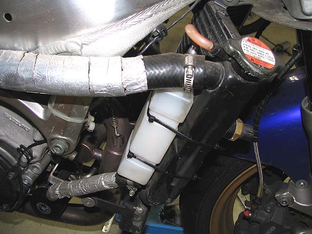 ラジエーターリザーバータンク。冷却水がラジエーター内に戻るように変更。