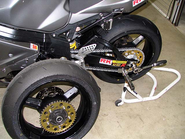 タイヤ交換して宙君のホイールを装着してみる。スプロケの摩耗によりチェーンが弛んでしまう。