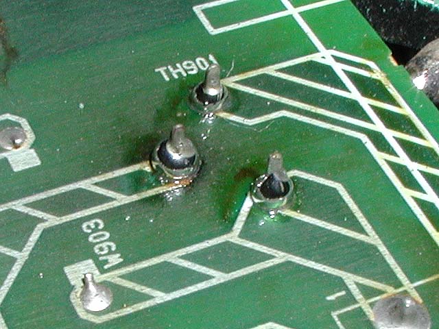 サーミスタの端子部分の半田付けが亀裂している。埃によって放熱が悪くなり、異常発熱を繰り返した為だと考えられる