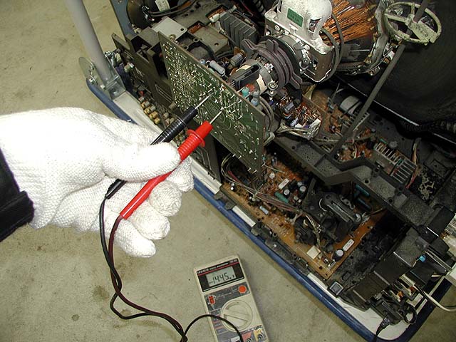 今日は途中になっていたテレビの修理。PTCサーミスタの載っている電源部を取り外す