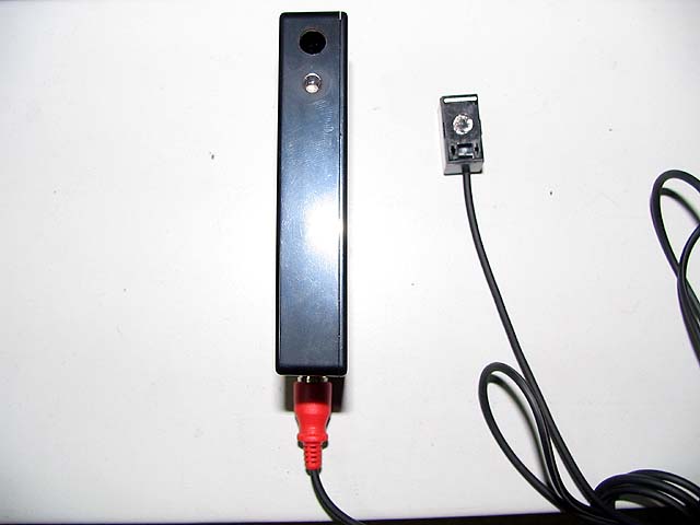 発信器はTVのリモコンで20m以上離れてもOK。右は電磁石でP−LAPのセンサーの近くに貼り付けて使う。