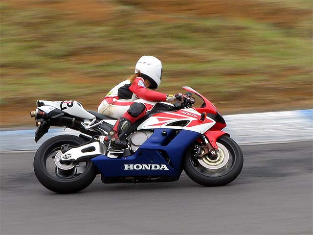 エミコちゃんは慣らし終えたばかりのCBR1000RR。ベスト15秒4。
