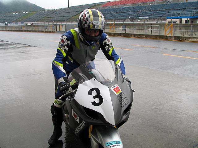 今日は仕事サボって茂木で練習走行。3日連続サーキットで2日雨。うひょひょひょ。