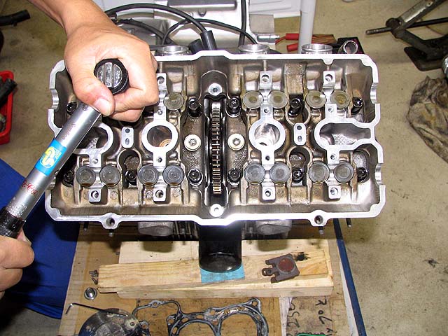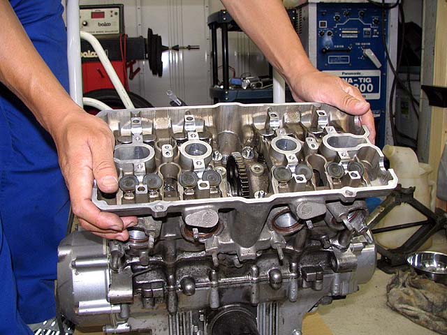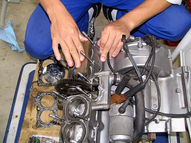 ヘッドボルトを締める。少しずつ均等に数回に分けて締めていく。続きは明日〜。