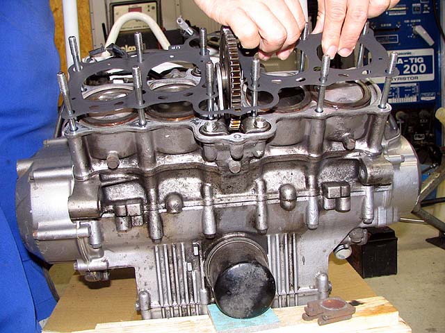 ヘッドとシリンダーの合わせ面を脱脂した後ガスケットをつける。