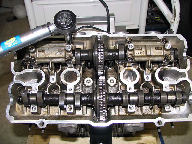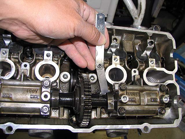 マークを合わせてカムを取り付ける。ゆっくりクランクを回してシム周りを安定させる。