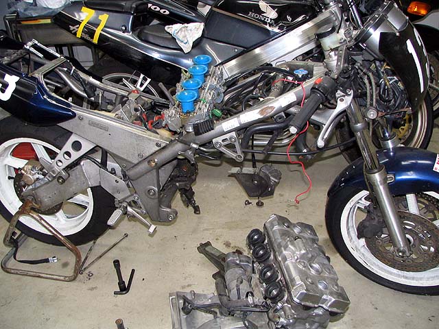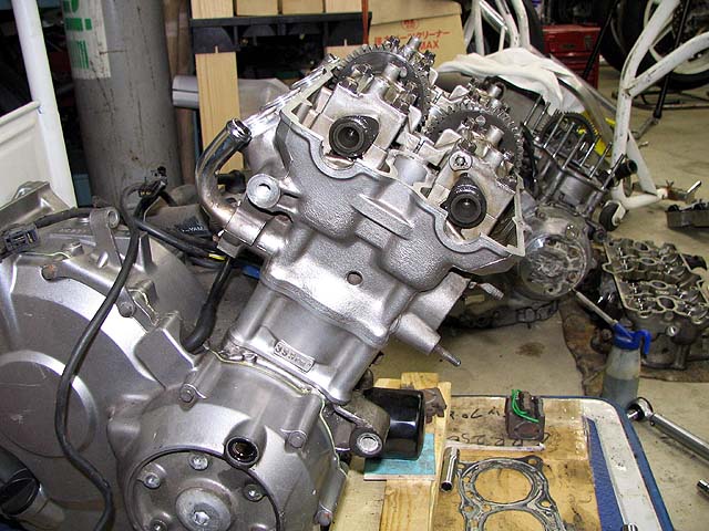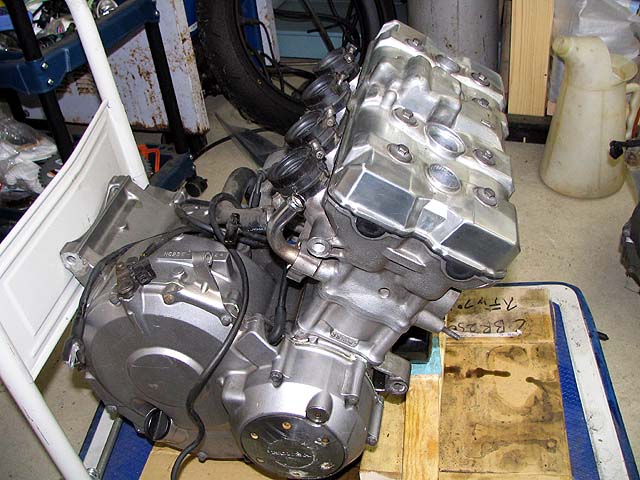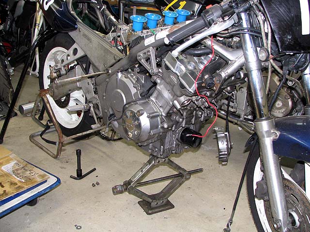 新エンジンを車体に乗せる。一人でやるととても大変。