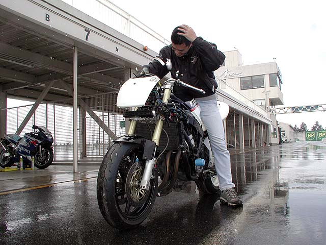 今日は那須サーキットで走行。予報では午前6時から12時までの降水確率は0%だったのに・・・