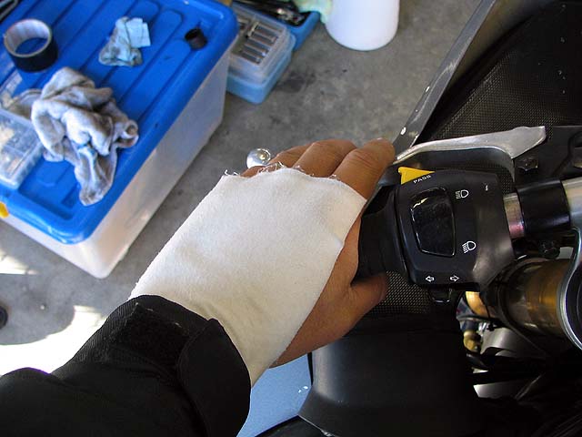 左手はまだ痛かったけどクラッチレバーを下向きに曲げて遊び最大にしてなんとか握れるようになった。