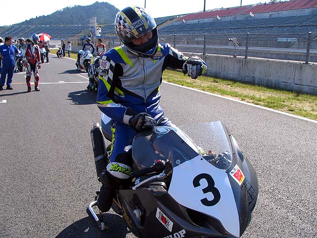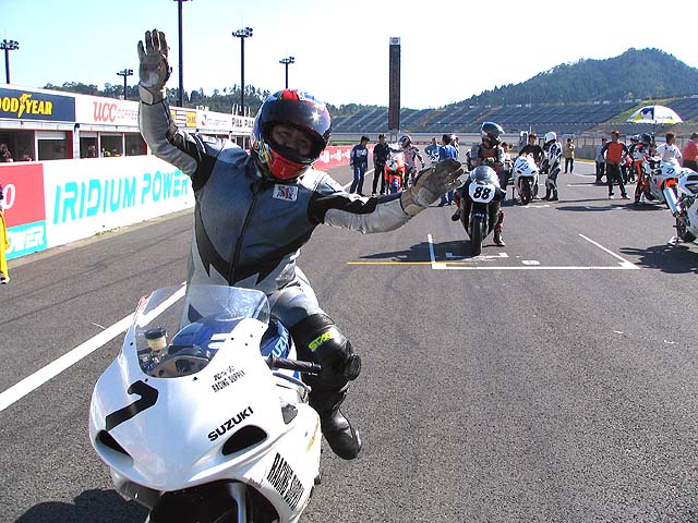 決勝前のグリッド上でも笑顔。しかしスタートすれば鬼神の走りで58秒!恐るべし。