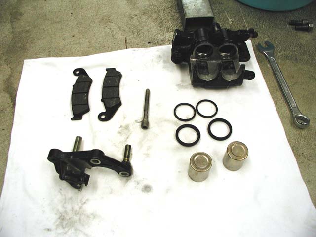 フロントブレーキも思いっきり引きずってんじゃん(涙)。こっちもバラさなきゃダメだろ〜なぁ