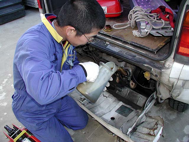 「走ってると変な赤いランプがついてたんスよね〜」 新品オイル3リッター注入。