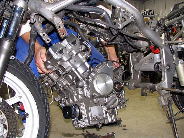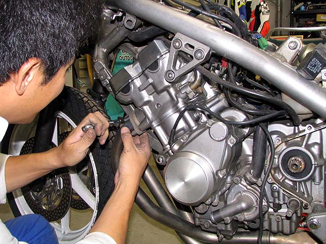 新しいフレームにエンジンを搭載。