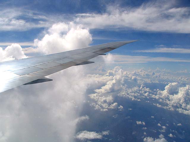 成田から飛行機で3時間位。南へ行くにつれて夏の雲になってきた。