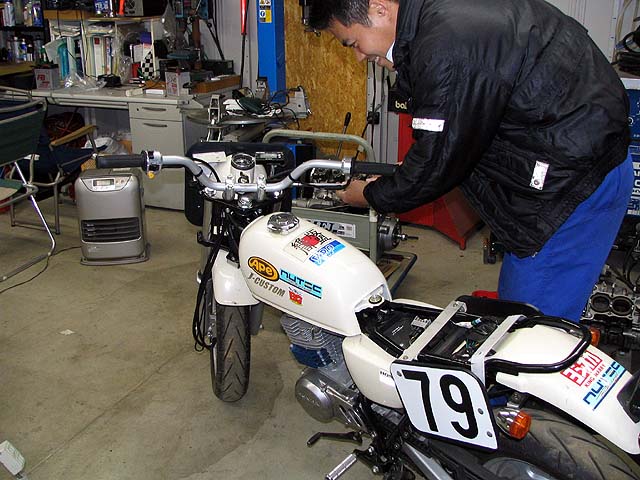 日曜日にもてぎ北でエイプの耐久に出るので車体の準備をする。
