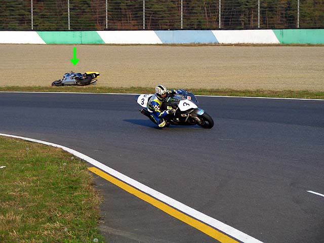 気温が低くなって走行開始直後の転倒続出。ウォームアップは慎重に。