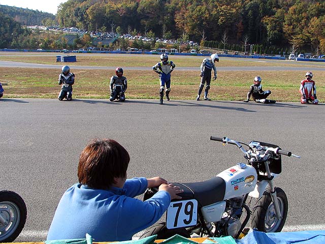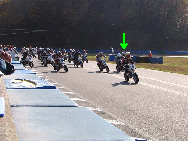 ミニバイクの苦手なぷくだはペースが上がらず、ズルズルと後退。