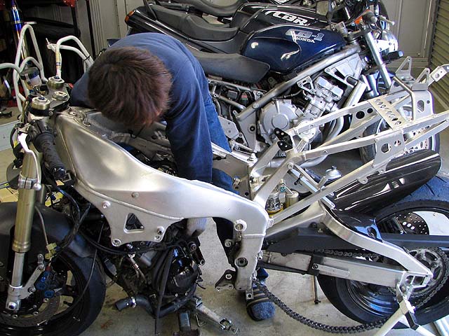 夜になってテポサトR1やっと完成。以前のとはフォークの角度が全然違う。前輪とラジエータの間隔も広がった。