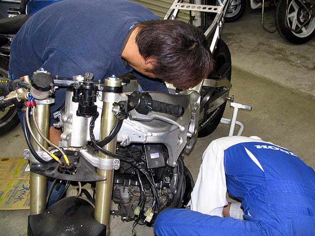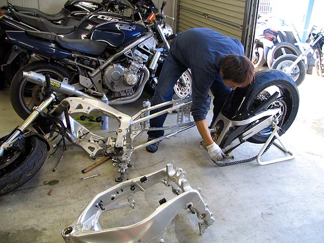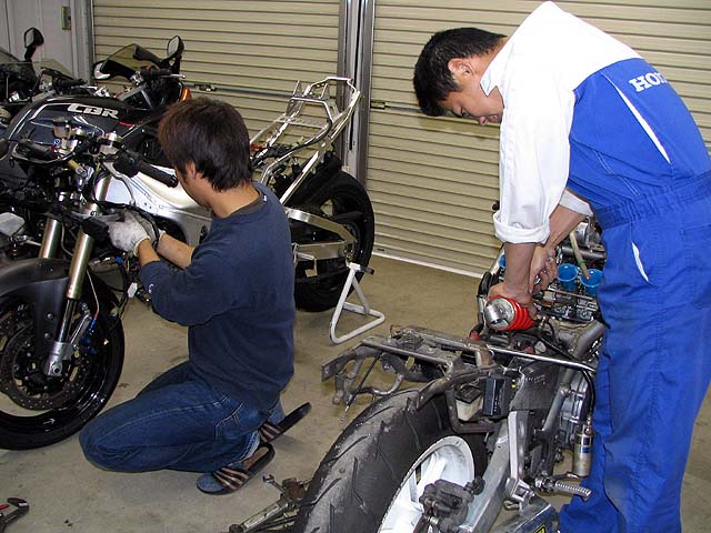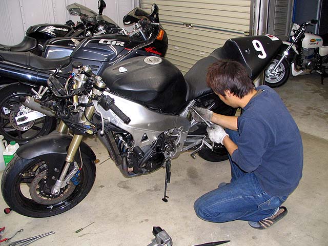 昼過ぎにガレージへ行ったらサトちゃんが作業していた。