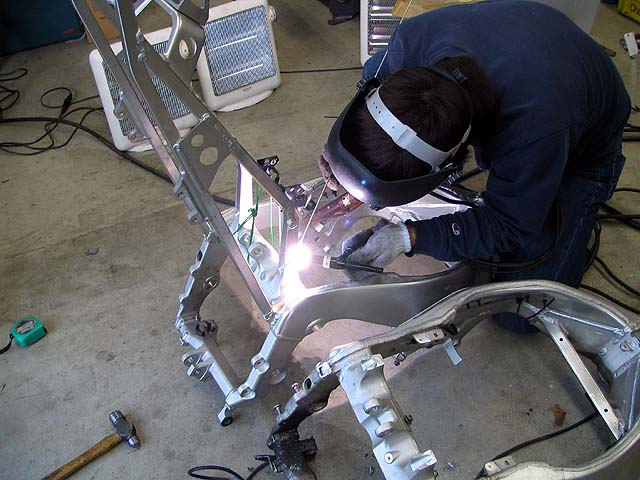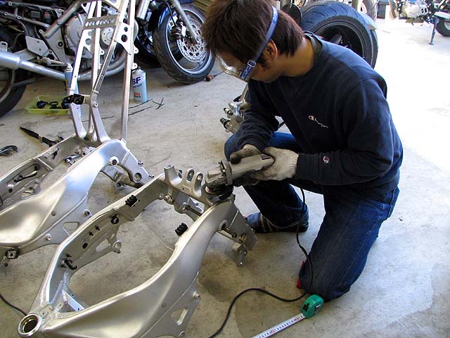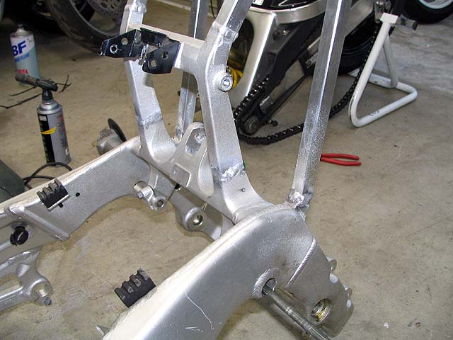 拾ったフレームにはシートレールが付いていないので旧フレームのを切ってくっつける。