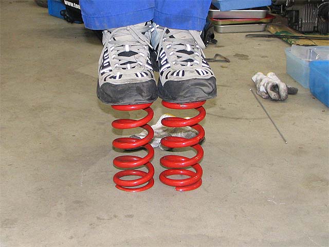 リヤサスのバネをぉお田さんからもらった固い物に交換。