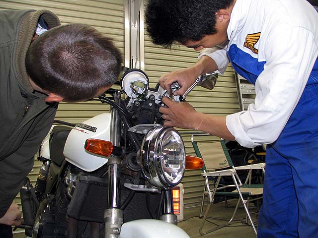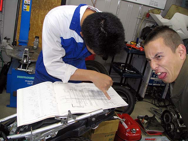 今日はノアさんが来た。CB400SFの速度リミッターを無効にする。カバーを外して配線をチェック。