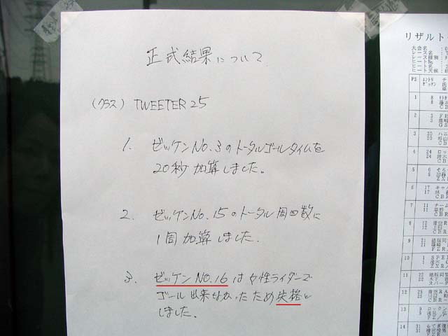 計測表示より3分位早くクローズしたので他にも交代してないチームがあったのだが、なぜかプクダチームだけ失格に。