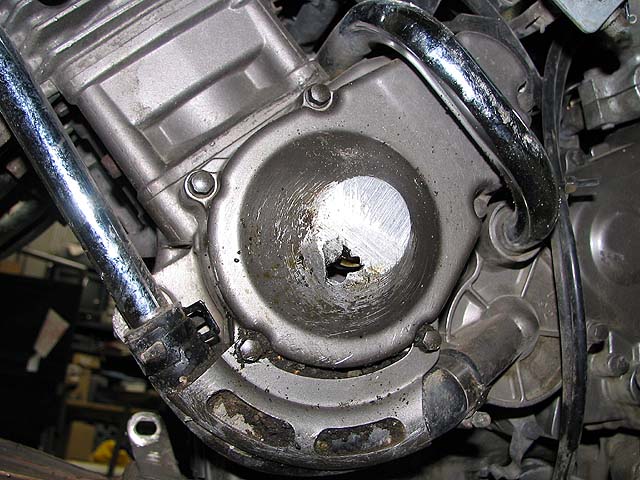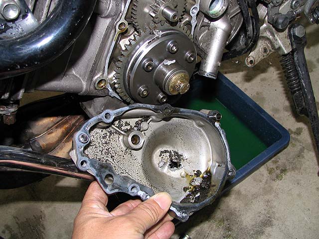 まずは穴の開いたカバーの交換。冷却水を抜いてパイプを外さないとカバーが取れない。