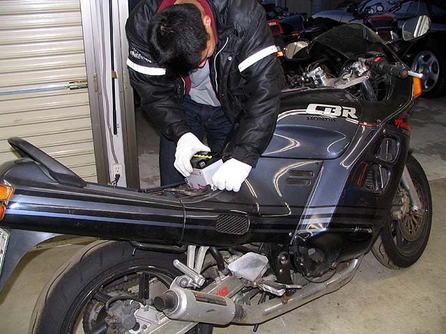 元旦なのに明日の絶同ツーリングに参加するためCBR750を整備。バッテリーが腐っていたので交換。