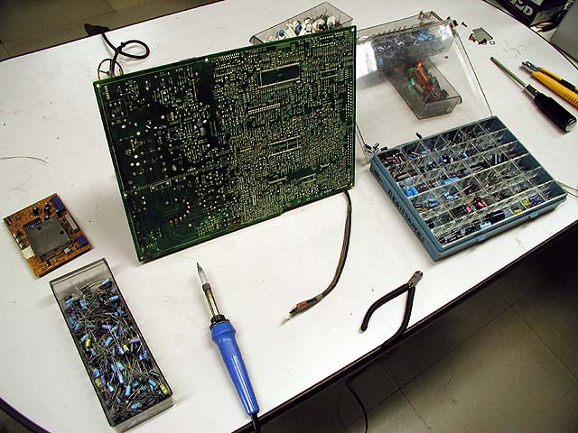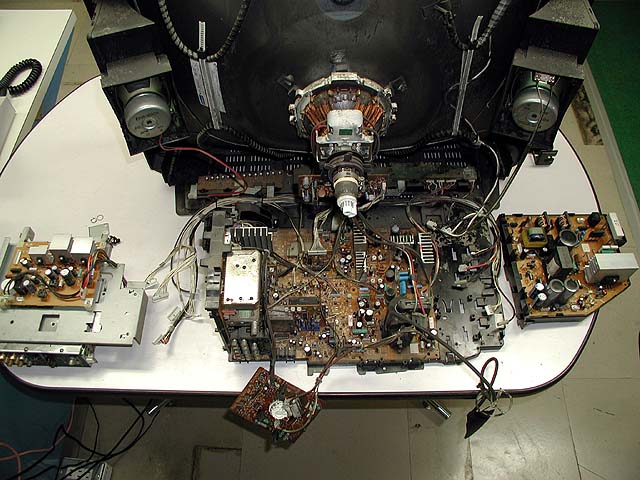 今日は途中になっていたテレビの修理。バラバラにしてメイン基盤をとりはずす。