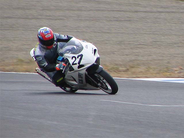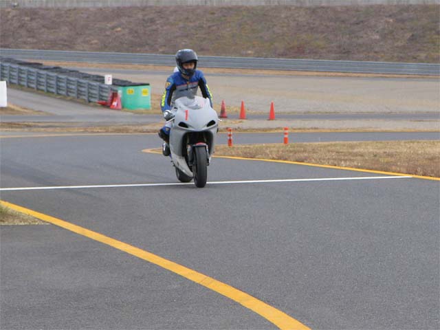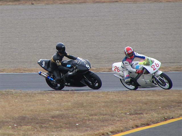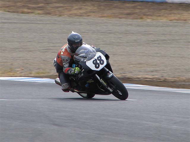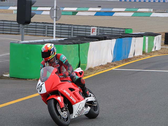 寝坊で遅刻してきたコースケ。もてぎは今日で2回目だがぐんぐんタイムを上げていく。