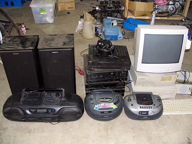 友人の引越しで出た不要品の中から使えそうな物を貰ってきた。ラジカセはCDがNG、コンポは電源入らず。