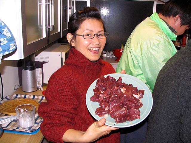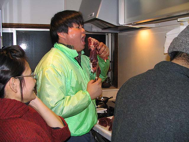 ナベ&鉄板焼きで食べる。全員腹一杯食べて余った十数キロの肉はお土産に。破壊堕さんありがとうございました。