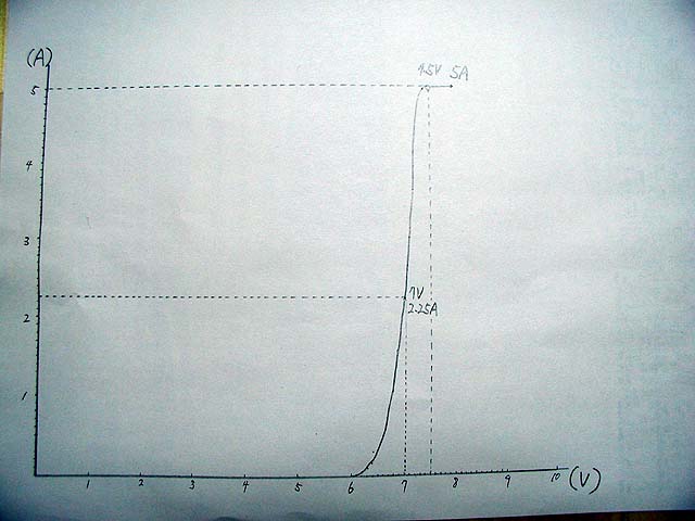 シャントレギュレーターの電圧−電流特性。設計通りに動作している。あとは実車に取付けて試験するのみ。上手くいったら商品化して特許取るか?(笑)
