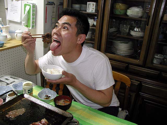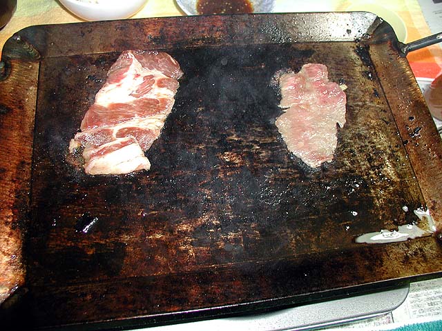 今日の夕飯は焼き肉〜♪ てのりさんとデス田さんからいただいた「猪肉」を食べるのだ!ぷくだ家家宝の極厚焼肉鉄板を準備