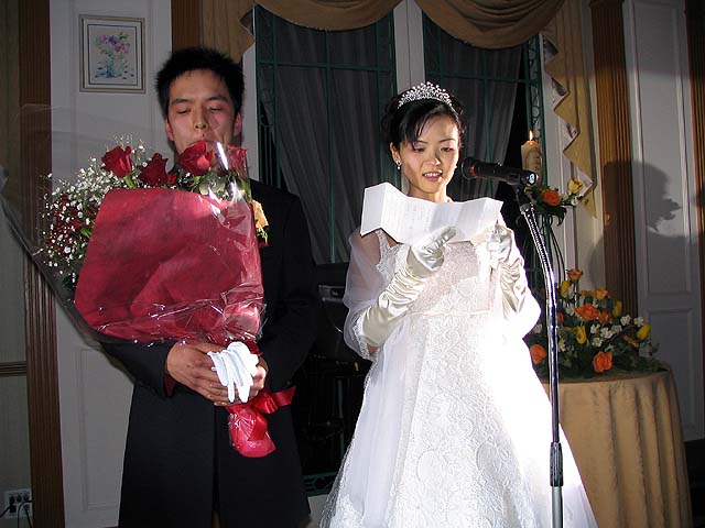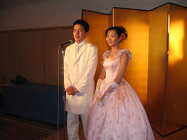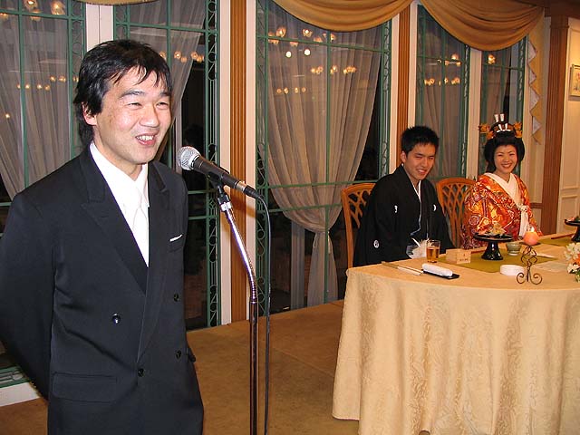 ぉお田さんのスピーチ。「二人の絆が、丈夫で長持ちなトヨタ車のようにトラブル無く続くことを願っています」